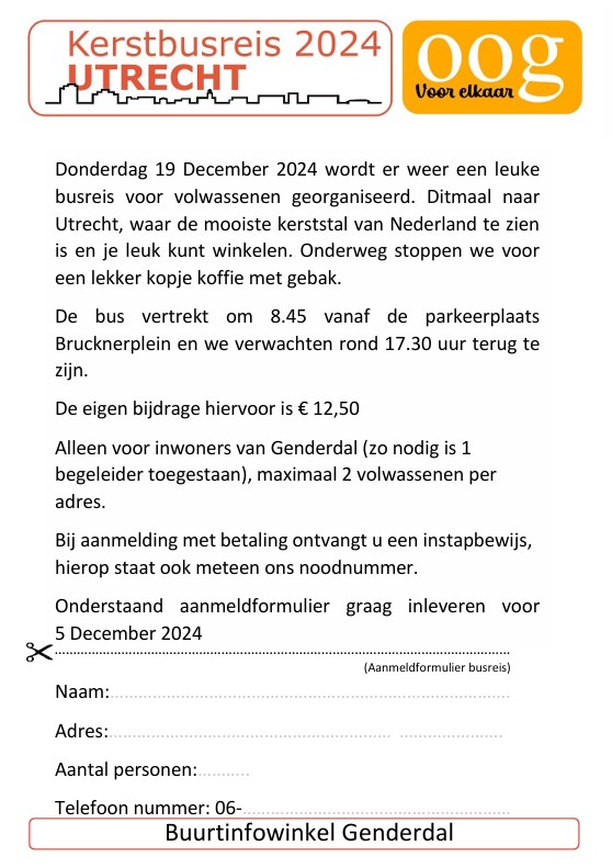 Donderdag 19 December 2024 wordt er weer een leuke busreis voor volwassenen georganiseerd. Ditmaal naar Utrecht, waar de mooiste kerststal van Nederland te zien is en je leuk kunt winkelen. Onderweg stoppen we voor een lekker kopje koffie met gebak.
